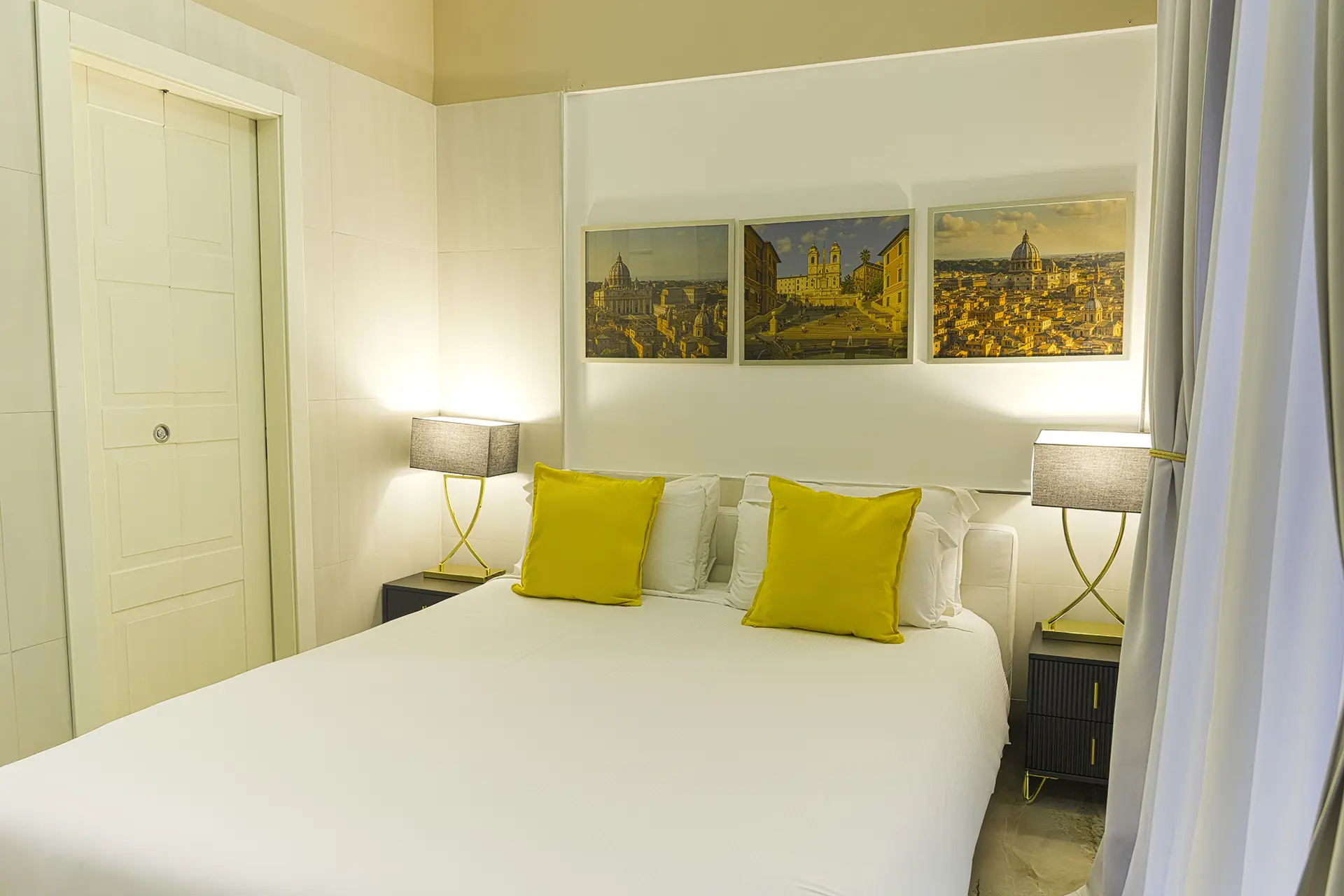 Le nostre camere combinano design contemporaneo con comfort supremo, offrendo una vista mozzafiato sulla città eterna e servizi di prima classe per rendere il vostro soggiorno perfetto.