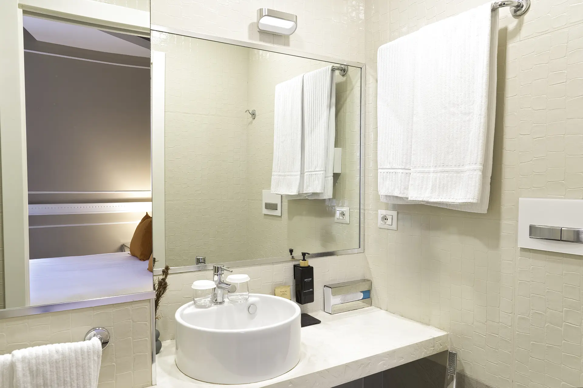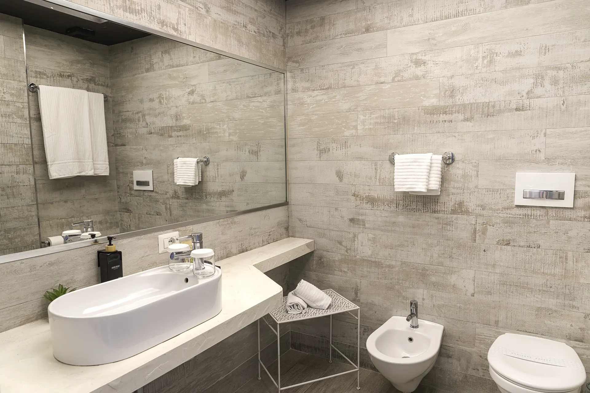 Il bagno, moderno e curato nei dettagli, è dotato di doccia, bidet, asciugacapelli e kit di cortesia dedicato. Completano l’esperienza comfort selezionati per garantire benessere e praticità durante tutto il soggiorno.