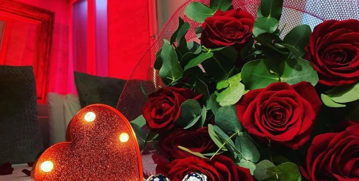 La stanza sarà un suggestivo nido d’amore con palloncini, luci cromatiche e candele accese. Troverete decorazioni di veri petali di rose e, a scelta, un bel bouquet di rose rosse o una deliziosa fonduta al cioccolato.